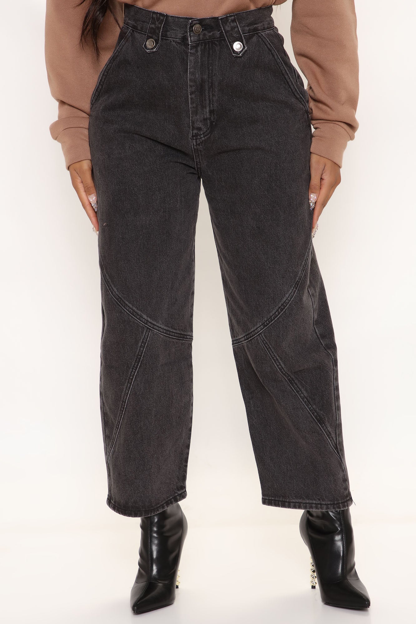 Western Showdown Non Stretch Balloon Mom Jeans - Black